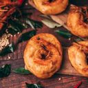 Golden fried Vadai with fiery red chilies - packed with heat for spice lovers