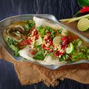 0Steamed Seabass With Spicy And Sour Sauce ปลากะพง นึ่งมะนาว