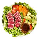 Romaine, seared tuna, avocado, edamame, cherry tomatoes, mandarin orange, sesame seeds, wasabi honey soy. Contains Gluten.