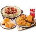 Usual Price: $51.50 8pc Chickenjoy Bucket, 1 Spaghetti Platter, 2 Sides, 1.5L Coca Cola