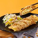 Experience the authentic taste of Taiwan with our delicious pancake filled with flavorful Taiwan sausage, melted cheese, and egg.