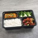 Kung Pao Chicken Fillet 宫保鸡柳, Stir-fried Baby Cabbage 清炒奶白, Hot Plate with Preserved “Cai Xin” and Minced Pork 菜香铁板豆腐 , Fragrant White Rice 粒粒香白米饭