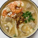 Slow-simmered for long hours with the natural umami of conpoy, this velvety congee is crowned with the ocean’s finest — succulent fresh tiger prawns, tender slices of grouper fish, sweet baby scallops, and handmade minced pork balls. Every spoonful brings a luxurious balance of seafood sweetness and comforting depth, making it the ultimate bowl of warmth and indulgence.