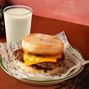 A savoury pan-seared chicken patty with sliced cheese, served in a warm English muffin. Served with one cup of classic soya milk.