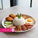 Fried fish fillet, egg, cucumber, Ikan bilis & peanuts with coconut steamed rice