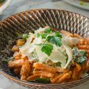Bacon, baby spinach, mushrooms, garlic tomato cream sauce, parmesan