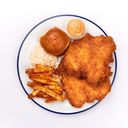 Comes with Mashed Potatoes, Coleslaw and Fried Bun. For fries, please add on. (Items come as pictured)