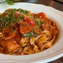 Clams, prawns, green shell mussel, squid, cherry tomato, basil, tomato sauce