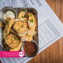 Thick Fries, Sesame Peanut Sauce, Spicy Oriental Chilli Sauce, Pork Belly Strips, Mayo Onions, Fried Chilli, Scallions