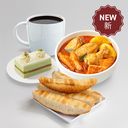 Consists of 2 Curry Puffs, 1 Toast and 1 Large Beverage