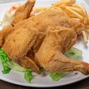 Spring Chicken serve with turmeric rice,steamed vege and egg