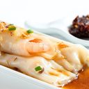 Steamed & thin savoury rolled up rice noodle sheets with prawn fillings