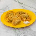 Delicate dumplings filled with savory goodness, served on a bed of perfectly cooked noodle & drizzled with a rich sauce